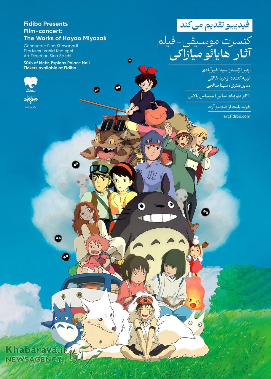 به‌ گزارش خبرآوا و به نقل از روابط عمومی فیدیبو، کنسرت موسیقی – فیلم انیمه‌های هایائو‌‌ میازاکی، چهارشنبه ۳۰ مهر ۱۴۰۴ در دو‌ سانس ۱۹ و ۲۲ در سالن رویال تهران اسپیناس پالاس توسط فیدیبو برگزار می‌شود.