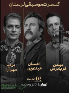 احسان عبدی‌پور، نوازنده باسابقه سرنا و بردیا مهرآرا، خواننده موسیقی غرب ایران، نخستین کنسرت مشترک خود را در تالار وحدت تهران برگزار می‌کنند.