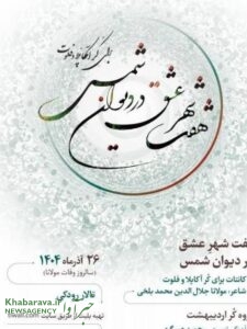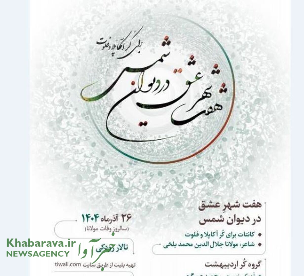 کنسرت گروه کُر اردیبهشت با عنوان «هفت شهر عشق در دیوان شمس»، ۲۶ آذر ماه به رهبری حمید عسکری در تالار رودکی برگزار می‌شود. در کنسرت گروه کُر اردیبهشت «هفت‌ شهرِ عشق در دیوان شمس» (برای کُر آکاپلا و فلوت) به آهنگسازی و رهبری حمید عسکری توسط گروه کُر اردیبهشت در تالار رودکی اجرا می‌شود. […]