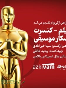 فیلم-کنسرت «برندگان اسکار موسیقی» با اجرای موسیقی متن فیلم‌های برنده اسکار بهترین موسیقی فیلم، ۸ دی در سالن اسپیناس پالاس تهران برگزار می‌شود.