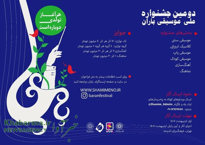 • چاپ خبر : انتشار فراخوان دومین جشنواره موسیقی «باران»